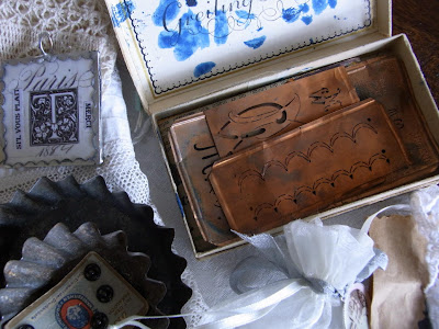 I love all of the gorgeous things sweet Carola sent you, and I love all of the gorgeous things you sent her!!! You both love the same pretty things! The French box Carola made is gorgeous and I love all of the wonderful things she filled it with! The sepia and cream colors are beautiful! What a delight for both of you to open your May Basket swaps! The soldered charms she makes are fabulous too! So many pretty things for you both to enjoy! Thank you for sharing! Your photos are gorgeous! Wishing you a wonderful weekend too! Love, Paula