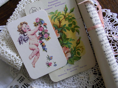 vintage paper and images, lace, rubber stamps, used stamps ect.